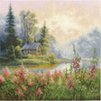 "At Dawn" is a cross-stitch kit that captures the tranquility of a morning by a lake, surrounded by flowers and nature, with a cozy cabin in the background. This design is ideal for lovers of natural landscapes and the serenity of dawn.