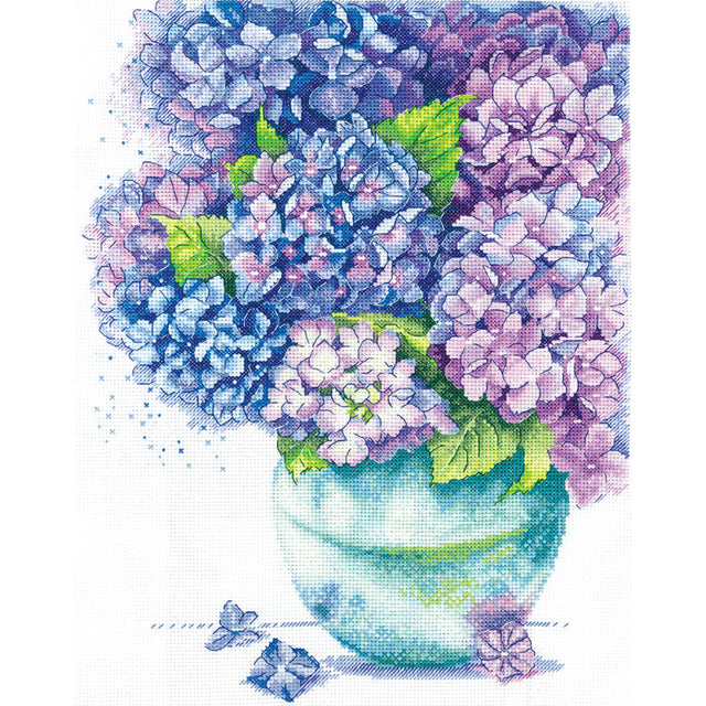 Captura la belleza eterna del verano con el kit de punto de cruz ANDRIANA SANB-30 – Endless Summer. Un magnífico ramo de hortensias en tonos lilas, violetas y azules, dispuesto en un delicado jarrón, transmite frescura, elegancia y serenidad. Un diseño lleno de color y detalle que iluminará cualquier espacio.