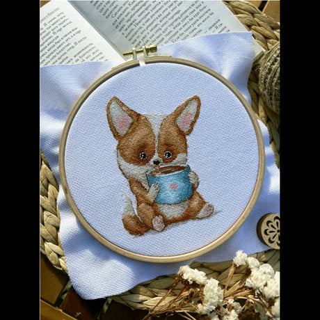Coffee lovers. Corgi - SANK-62 Andriana - Cross Stitch Kit