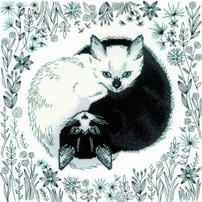 Explore balance and harmony with the Riolis "Yin and Yang" Cross Stitch Embroidery Kit 2150 . This unique design features two adorable black and white cats, symbolizing the concept of Yin and Yang, surrounded by elegant floral patterns.