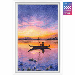 Immerse yourself in the serenity of a solitary sunrise with RTO's "Alone with the Dawn" cross stitch kit. This design captures the utter peace of a fisherman sailing alone, enveloped by a sky in shades of pink, gold, and violet that gently reflect on the calm waters.