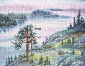 • White Aida 14 fabric serves as the canvas for this morning scene, allowing the colors of the sunrise to shine brightly.