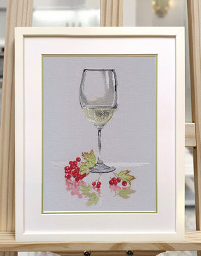 Celebrate elegance and simplicity with the OVEN 1680 – A Glass of Sparkling Wine cross stitch kit . This delicate design depicts a glass of sparkling wine alongside bunches of red currants, creating a refined and luminous composition, ideal for lovers of good taste and artistic embroidery.
