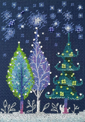 The RTO "Ball Gowns" cross stitch kit, item C376, is an artistic and festive interpretation of trees in a night forest. This compact 10.5x14.5cm design showcases uniquely decorated trees, celebrating the festivity and spirit of the Christmas and New Year season.