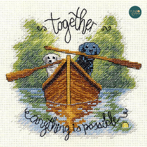 This beautiful Cross Stitch Kit " Dogs Together in a Boat " from the Dimensions brand is a perfect gift for a dog-loving friend. The design represents the power of teamwork and this work is Copyright 2020 Ron Schmidt . Kit includes 14 count Aida cloth. size 6" x 6" (15.25 x 15.25 cm), 6-ply Mouliné cotton thread, needle, color chart and instructions in Spanish. This kit is easy to follow and is ideal for beginners and enthusiasts alike. Once finished, it will be a great decoration for your home or a special gift for a friend.