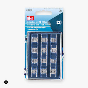 Organize your CB bobbins efficiently and practically with this Prym bobbin organizer box. The set includes 12 plastic or metal bobbins, perfect for use on home and professional sewing machines. The box is made of sturdy plum blue plastic and features a clear lid that allows you to easily see the colors and number of threads remaining in each bobbin. The size of the bobbins is Ø 20.5 mm and 11.7 mm high, ideal for use in most sewing machines. With this organizing box, you will always have the bobbins you need for your sewing and craft projects on hand and you will be able to keep your work area tidy and clean.
