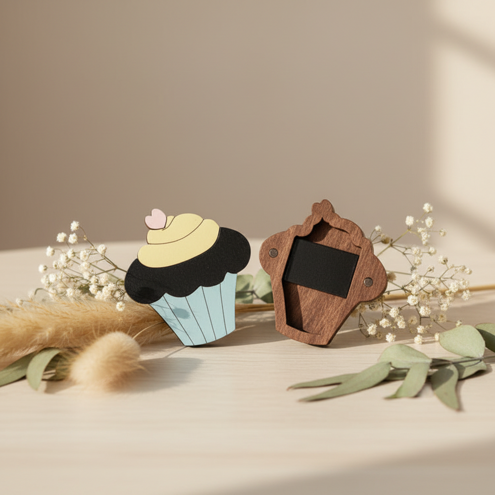 Inject some joy into your sewing practice with Wizardi's 'Cupcake Delight' Needle Case. This cute case is not only a practical organizer for your needles, but also a decorative piece that brings color and fun to your workspace. Carefully constructed from sturdy 3mm plywood and fitted with powerful magnets, it offers safety and style in an adorable, handy form. Ideal for those who value the art of sewing and organization, this pencil case is the perfect blend of functionality and charming design.