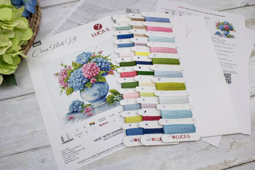 Cross Stitch Kit 'Vase with Hydrangeas' by Luca-S B7033