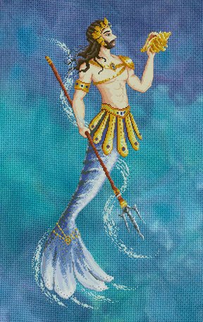 He announces from the golden palace, at the bottom of the sea. As the son of Poseidon and Amphitrite, he has the power of the waters. A blow from the golden shell can provoke anger upon the waves of the ocean or protect the stillness of calm seas.