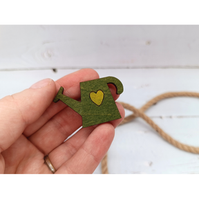 🔹 Design: Green watering can with a yellow heart – cheerful and spring-like