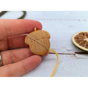 The Wizardi magnetic needle holder in the shape of a golden acorn is a practical and elegant accessory for embroidery, cross-stitch, and sewing. Made of plywood with a gold finish, it combines a natural design with a warm and sophisticated touch.