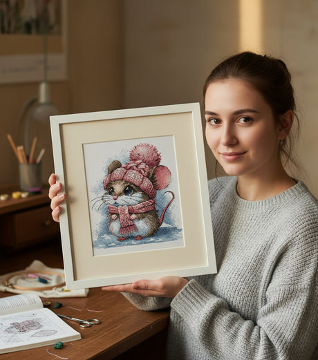 Cross Stitch Kit - Stitch and Art P073 - Little Mouse with Winter Hat
