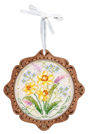 Cross Stitch Embroidery on Wooden Base "Miniature. Spring Flowers" SO-093 by MP Studia