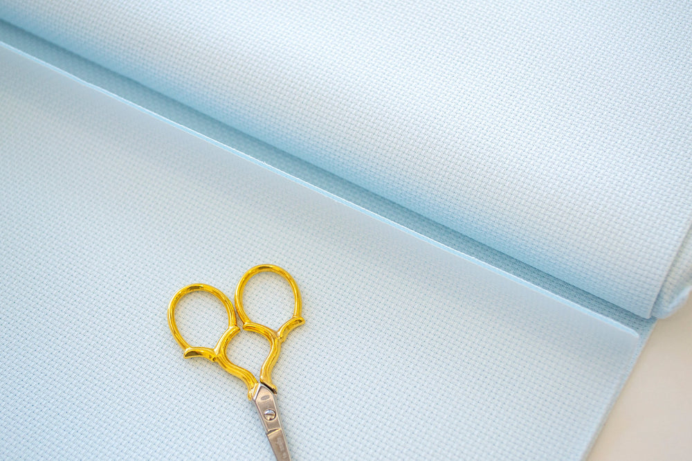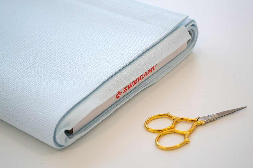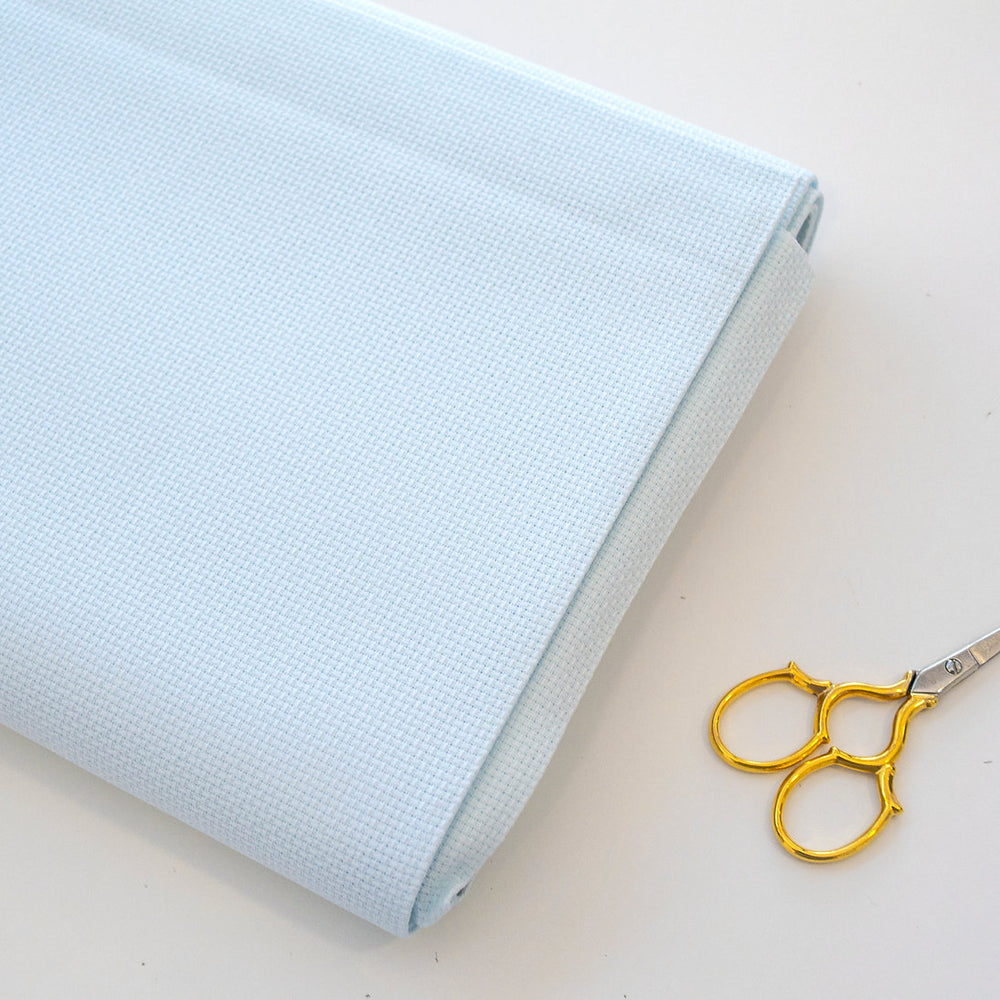 Zweigart Aida 14 count fabric 3706/550 Light Blue. 100% cotton, 110 cm wide, color similar to DMC 775, ideal for cross stitch.