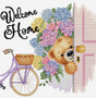 Dale una cálida bienvenida a casa con este tierno kit de punto de cruz Welcome Home! de Luca-S. El diseño presenta un simpático osito asomado por una puerta rosada rodeado de flores de colores vibrantes, acompañado por una bicicleta vintage con cesta. Ideal para transmitir alegría, cariño y ternura en cualquier rincón del hogar.