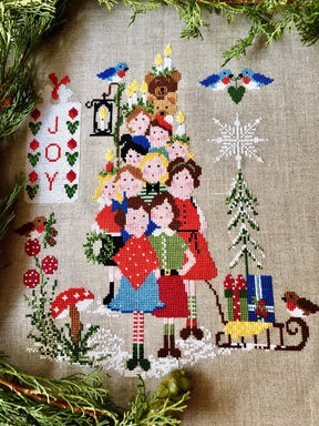 "Joy" is a color Sampler cross stitch scheme with Christmas motifs