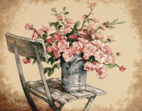 Roses on White Chair - 35187 Dimensions - Cross Stitch Kit