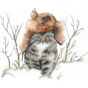 Déjate cautivar por el encanto invernal del kit de punto de cruz ANDRIANA SANB-29 – Master’s Hunt. Este divertido y detallado diseño muestra a un gato con mirada astuta, cubierto por un gorro de piel y acompañado por un pequeño pajarito. Una escena llena de humor y ternura que combina realismo y calidez.