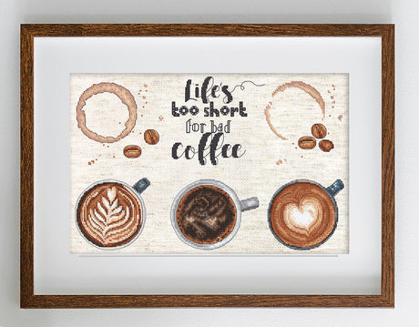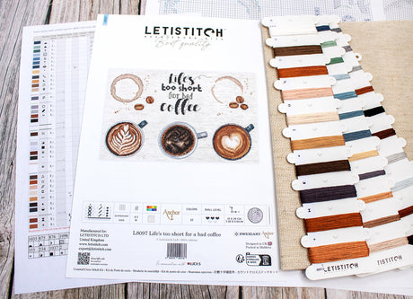 Kit de Punto de Cruz Letistitch L8097 "La Vida es Demasiado Corta para un Mal Café"