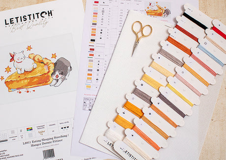 Kit de Punto de Cruz "Comer Dormir Estirarse" - LETISTITCH L8811