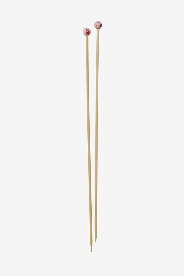 ransforma tus proyectos de tricot con las Agujas de Bambú DMC Pintadas a Mano, Tamaño Nº 4, una fusión perfecta de belleza y funcionalidad. Estas agujas no son solo herramientas, sino también piezas de arte, con una bolita de bambú en la parte superior decorada con delicadas flores pintadas a mano.