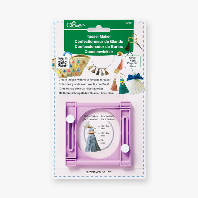 El confeccionador de borlas Clover 9940 es una herramienta práctica y sencilla que te permite crear hermosas borlas con hilos y lanas de tu elección. Con este accesorio, podrás agregar un toque decorativo único a tus labores de costura, tejido o manualidades.