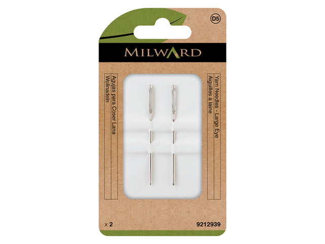 Descubre la facilidad de coser y rematar tus tejidos de punto y ganchillo con el Pack de 2 Agujas Metálicas para Lana de Milward. Diseñadas con punta roma redondeada, estas agujas laneras son ideales para trabajar con tejidos delicados sin causar daños, mientras que sus ojales de gran tamaño facilitan el enhebrado de lanas e hilos de alto grosor sin esfuerzo.