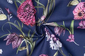 Sumérgete en la elegancia de la temporada con la tela Gütermann Premium Collection BRILLIANT, donde cada diseño es una obra de arte textil. Esta colección de otoño e invierno trae una sofisticada fusión de naturaleza y geometría, con dalias espléndidas y fritilarias coquetas entrelazadas con el encanto etéreo del ginkgo y la terrenalidad de la mora silvestre. Los patrones se realzan con una paleta de colores profundamente pensada, que incluye el sereno verde de abeto complementado por un delicado tono arena, el soñador azul Atlántico y un rico berenjena que aporta una calidez excepcional a la colección.