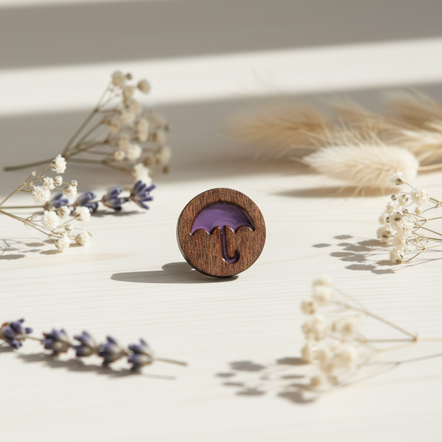 - Material: Madera contrachapada con un detalle de paraguas en resina epoxi.