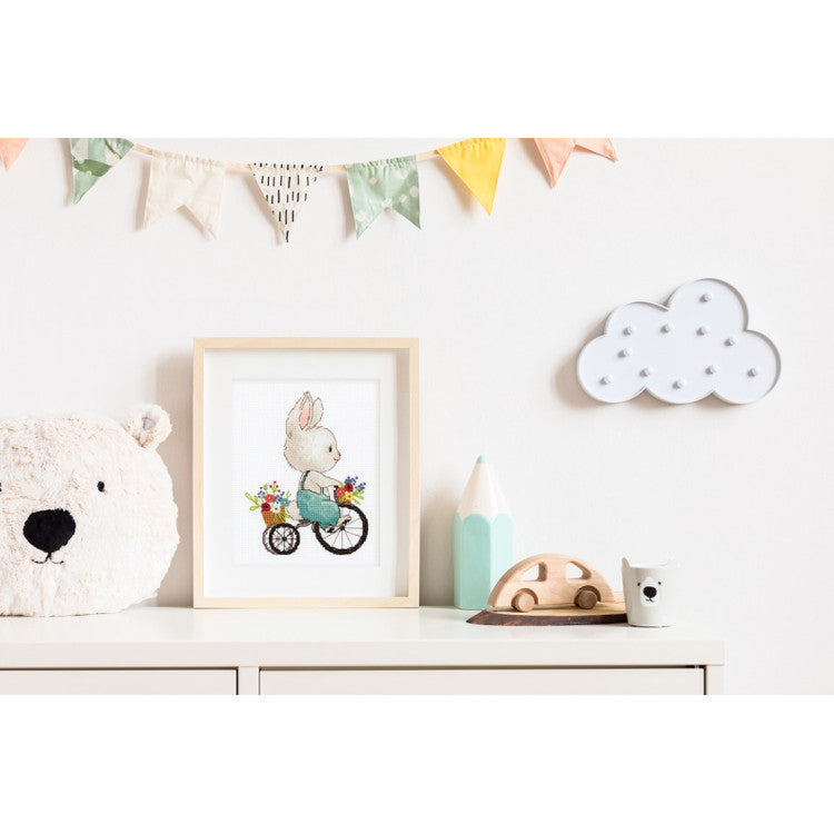 Kit de punto de cruz KLART “Conejito en bicicleta” KL8-521