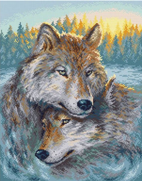 Lobos al atardecer. Brill Art MC-095. Kit de Punto Diamante