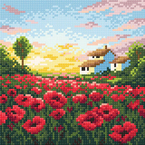 Paisaje con amapolas. Brill Art MC-016. Kit de Punto Diamante