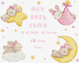 Este encantador diseño con conejitos y detalles en tonos suaves es ideal para crear un recuerdo único y personalizado del nacimiento de tu niña.