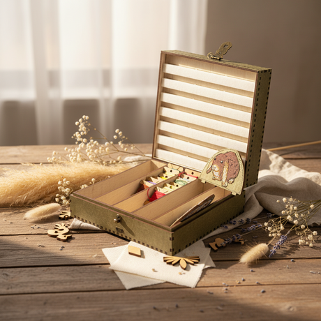 Organizador para Agujas con Caja de Hilos en Base de Madera, Verde, 210 Huecos OG-065