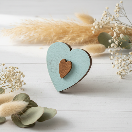 Porta Agujas de Madera con Corazón Rosa - Wizardi KF056/100P