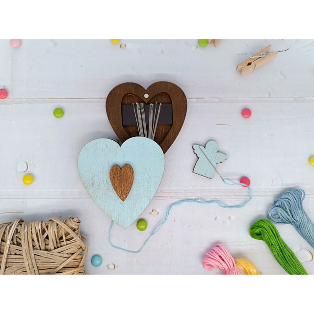 Estuche para Agujas Corazón Azul - Artesanía en Madera Wizardi KF056/100B