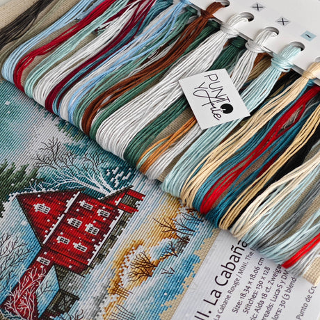 Kit de Punto de Cruz "La Cabaña Roja bajo la Nieve" P044 de AVA