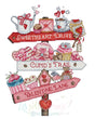 Ducles, té, regalos y corazones en este esquema de punto de cruz contado de Les Petites Croix de Lucie.