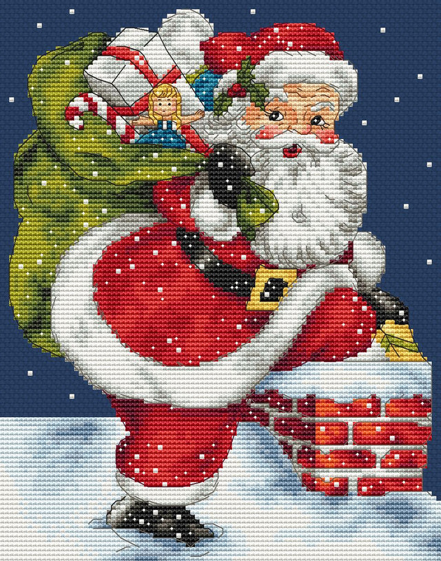 Papá Noél y los regalos en este esquema de punto de cruz contado de Les Petites Croix de Lucie.
