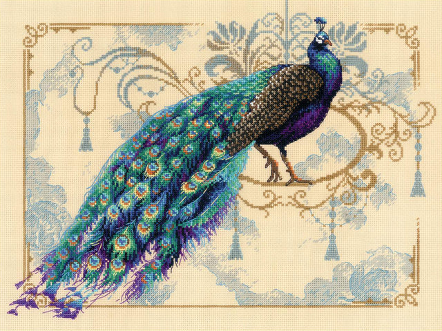 Una Ventana a un Mundo de Esplendor y Color: "Cuento de Oriente" de Riolis 2099 te invita a bordar la magnificencia de un pavo real, símbolo de nobleza y belleza, en un escenario que recuerda las ricas narrativas y el misticismo oriental.