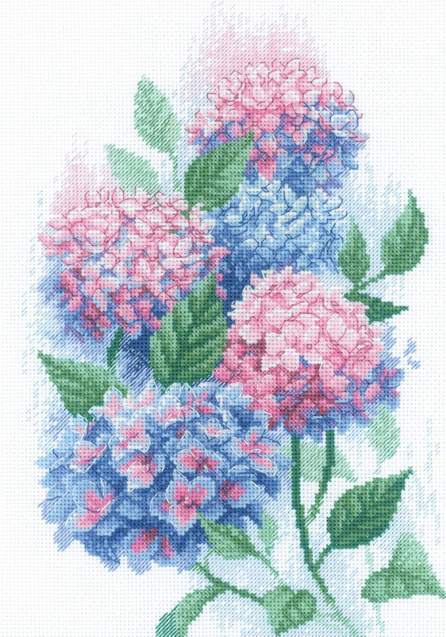 Kit de Punto de Cruz - "Hortensias Elegantes" - Riolis 2139