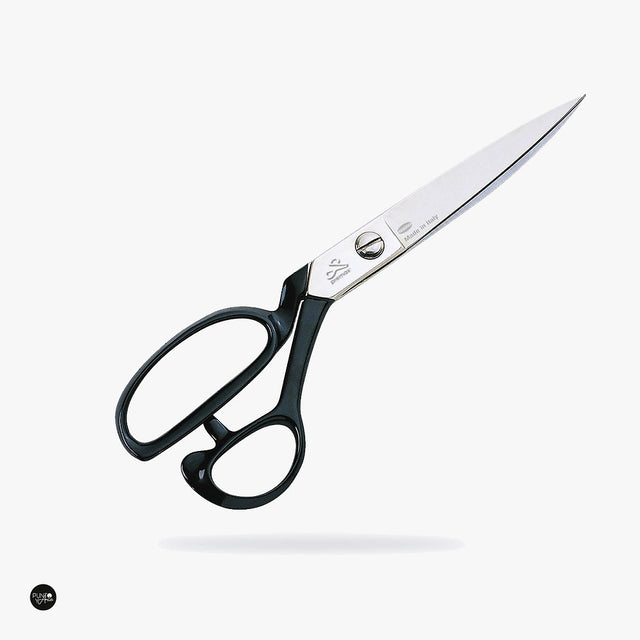 Una línea de artículos producida con los mejores aceros al carbono revestidos de níquel. Una larga experiencia en la producción de esta línea garantiza un alto nivel de calidad en relación a la precisión del corte y a la duración del filo. Las operaciones manuales y la pasión de los artesanos, dan al artículo un toque de autenticidad, propia del Made in Italy. Las tijeras de la línea Classica, presentadas con diferentes diseños, se caracterizan por las puntas muy finas que permiten un corte preciso. Aptas para los trabajos de sastrería profesional, Acero al carbono, Mango barnizado negro, 10"-cm. 25,5, Made in Italy