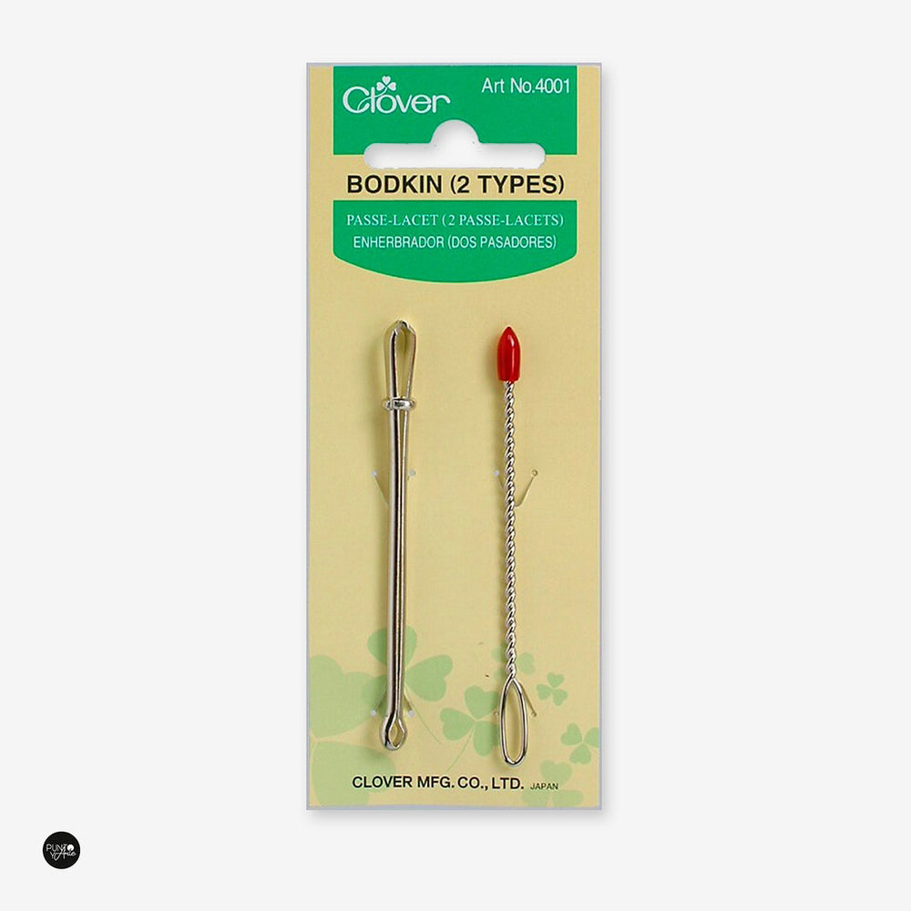 Descubre el juego de 2 pasacintas Clover, una solución práctica y versátil para pasar elásticos, cintas y cordones a través de dobladillos y jaretas de forma sencilla. Este set incluye dos pasacintas metálicos con diseños distintos: uno con forma de pinza y otro con una bola en un extremo.