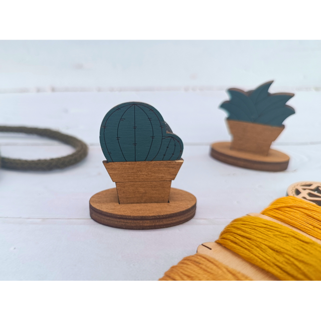 Haz que tus proyectos de bordado sean aún más agradables con el Cortador de Hilos "Cactus" KF050/1 de Wizardi. Este práctico accesorio, con un diseño encantador de cactus, está hecho de contrachapado duradero y es ideal para cortar hilos de manera rápida y sencilla mientras trabajas en tus manualidades.