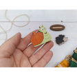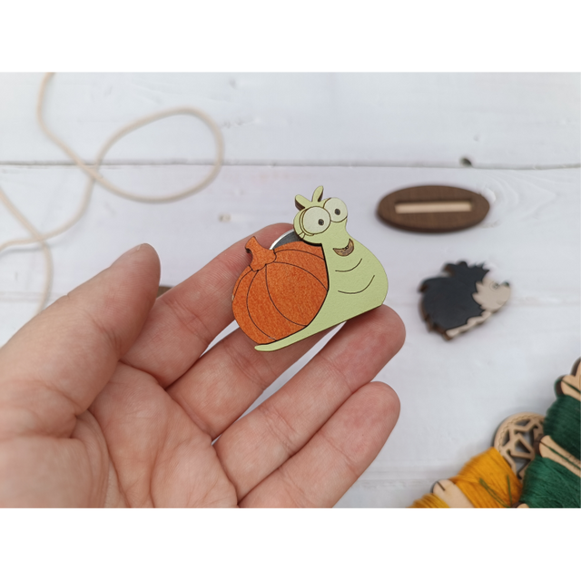 Haz tus proyectos de bordado y costura más alegres y funcionales con este cortahilos de madera en forma de caracol con calabaza.