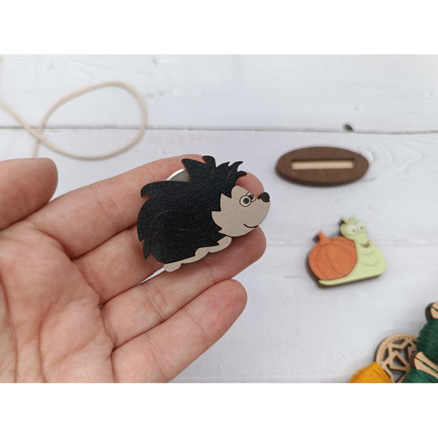 Haz tus proyectos de bordado y costura más divertidos y funcionales con este cortahilos de madera con forma de erizo.