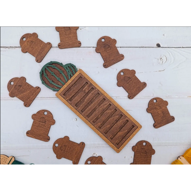Organiza y almacena tus hilos de bordado con este práctico organizador de bobinas con diseño de cactus.
