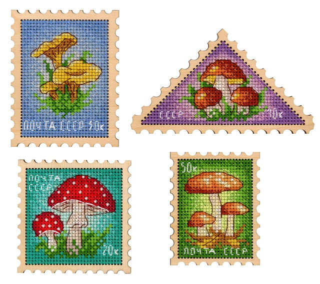 Kit de Bordado en punto de cruz con base de madera "Sellos de la URSS. Imánes" SO-115