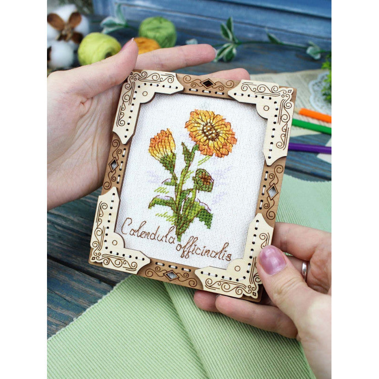 Kit de punto de cruz en base de madera Miniatura Caléndula – MP Studia SO-140