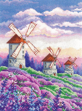 Kit de Punto de Cruz - Paisaje con Molinos de Viento - SANP-63 de Andriana